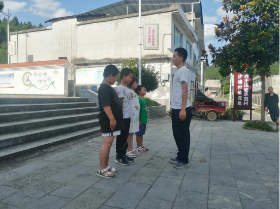 指导留守儿童站军姿