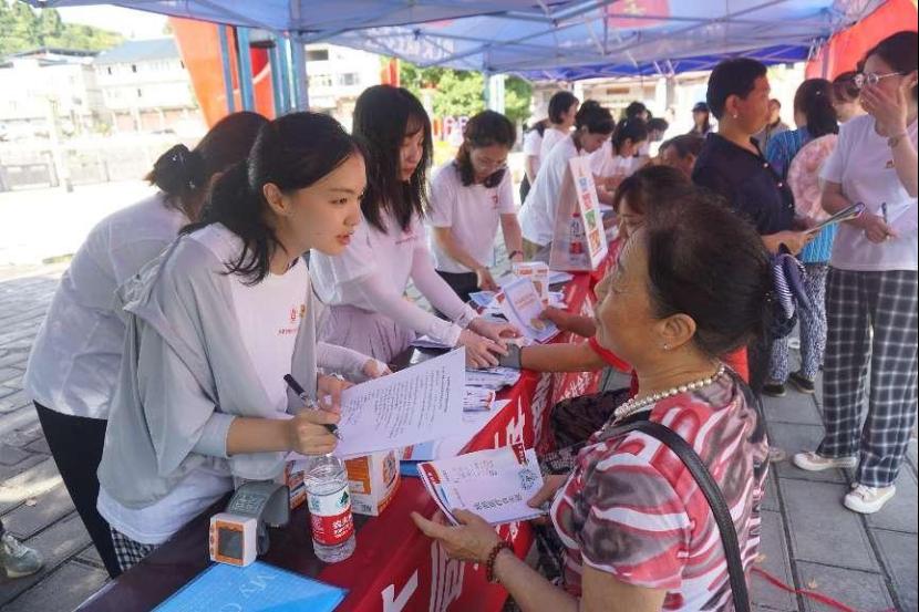 “助力衰弱早发现,促进健康老龄化”衰弱筛查实践小分队对老年人进行衰弱筛查,宣传老年衰弱的预防措施,如科学膳食、正确运动、健康生活方式等。