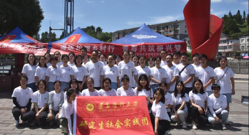 为积极贯彻落实国发〔2022〕2号文件精神,引导研究生扎实服务乡村振兴和健康贵州建设,在实践中坚定理想信念。遵义医科大学护理学院依托专业优势,组建“遵医护理乡村行,青春共筑振兴梦”实践团队,分为五支小分队共计47名师生,于2022年7月22日上午在枫香镇活动广场开展研究生社会实践活动。