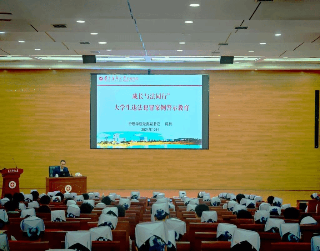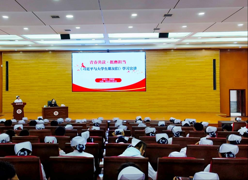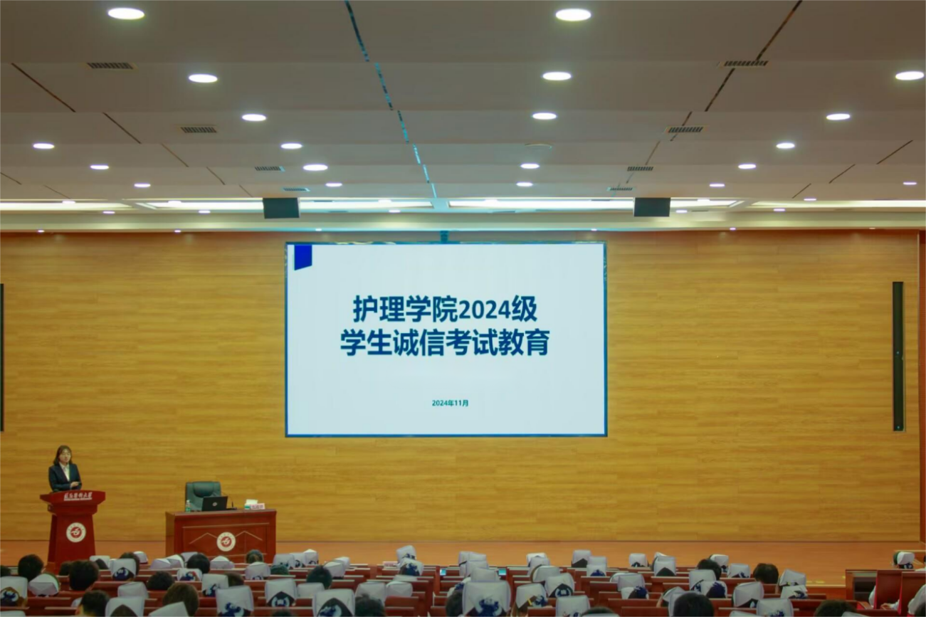 为引导青年学子坚定理想信念,努力成为有理想、有道德、有能力、敢担当的新时代护理新人,2024年11月1日15:00,护理学院在道德讲堂举行2024级新生思想政治教育大会。学院党委书记张咏梅,学院党委副书记陈伟,学院党委委员、学生第二党支部书记权明桃,学院团委副书记吴雪双及2024级400余名本科新生参加,会议由年级辅导员高婷婷主持。