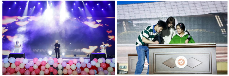 晚会由“丹心·红色精神永传承、雅韵·古艺流芳韵悠长、青春·歌舞飞扬启新航”三个篇章构成。在“丹心·红色精神永传承”篇,情景朗诵《致先辈》、歌剧《黄河颂》、话剧《黎明》,带领师生沉浸式回顾了一批批热血青年为拯救民族危亡挺身而出,用青春之火点燃了亿万中华儿女爱国热情的故事,让青年学子看到了中国青年在拯救民族危亡中的责任与担当。“雅韵·古艺流芳韵悠长”篇,乐器合奏《琴瑟和鸣·古今乐韵交响》、舞蹈《唐印》、诗书琴韵表演《春江花月夜》,一场场绚烂多彩的视听盛宴,让青年学子在感传统文化之美、品传统文化之韵中,深刻体悟到中华文脉绵延不绝、生生不息的磅礴动力与生命节律。“青春·歌舞飞扬启新航”篇,舞蹈串烧《舞动青春》瞬间点燃了现场气氛,展现了青年学子朝气蓬勃、奋发进取、勇敢追梦的自信与活力;歌曲《唱响青春未来》《如果可以》,演绎了青春的希望与梦想;诙谐小品《大一新生生存指南》涵盖了新生在大学初期可能遇到的安全、学业等方方面面问题,助力新生摆脱迷茫,明确成长方向。此外,晚会现场还穿插了两轮激动人心的抽奖环节,定时追光锁定幸运观众,为整场晚会增添了无数惊喜与欢乐。