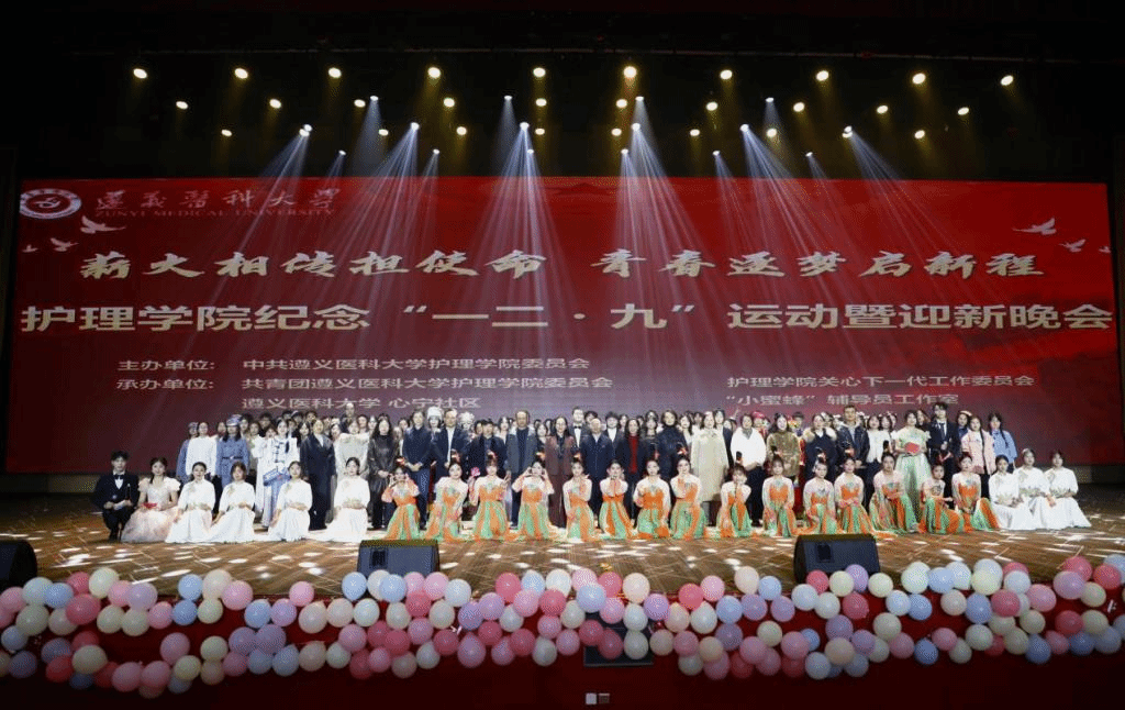 2024年12月8日晚,护理学院在学校会堂举行“薪火相传担使命 青春逐梦启新程”纪念“一二・九”运动暨迎新晚会活动。学校党委副书记、校长龚其海出席晚会,学校党委统战部、团委、资助管理中心、关工委等职能部门领导,学院党委书记张咏梅,党委副书记、院长邓仁丽,党委副书记陈伟,副院长周静及学院师生一同观看演出。