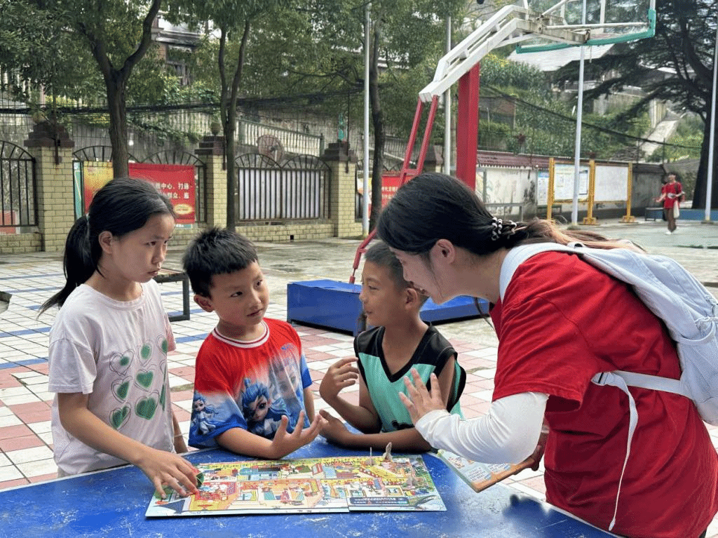 “安全代码”巧创新,自护知识入童心。为筑牢儿童安全防线,实践团推出“安全代码”自护行动。巧妙地将安全知识融入艺术创作,组织儿童利用AI共同创编《守护星光》歌曲及配套手势舞,并辅以安全知识竞答巩固学习效果;同时,成员们还组织儿童一起玩“危险发现家”家庭安全隐患识别桌游,以游戏化互动等形式强化安全意识,让安全自护知识入脑入心。