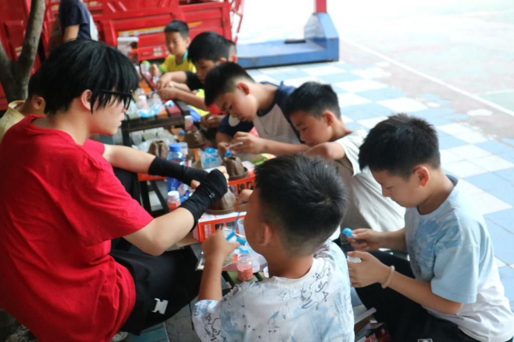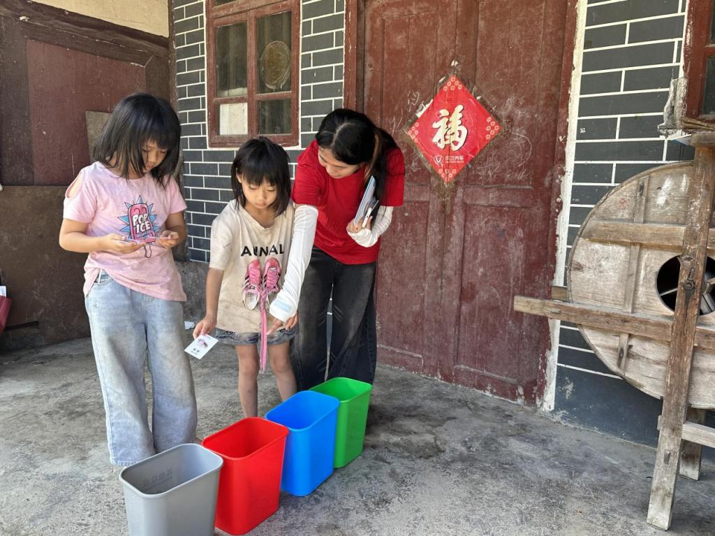 “生活赋能”重实践,劳动淬炼促自立。实践团开设“生活赋能”劳动工坊,系统推出三期专题课程。从“基础生存技能”的七步洗手法、烹饪劳动体验,到“绿色创造技能”的垃圾分类、塑料回收制作瓶盖日历;再到“社区服务先锋”的创建“技能树”便签墙,匹配村民“我需要”与儿童“我能做”促成线下技能交换。活动中“社区小助手”等徽章奖励有效点燃了儿童参与热情,提升了他们的独立生活能力、环保意识和社会责任感。