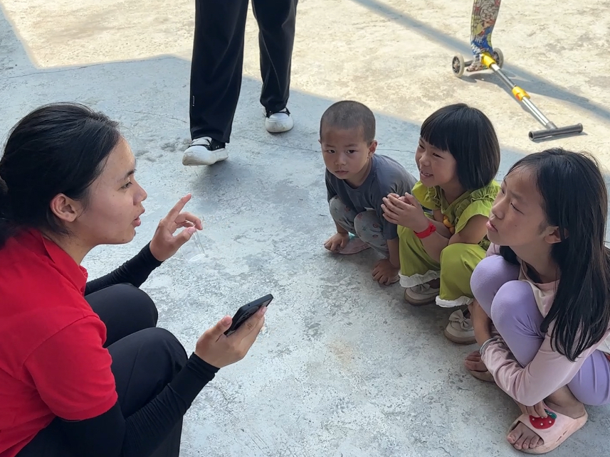 “科普实验”启新知,童心探秘趣无穷。为激发乡村儿童探索热情,实践团精心策划“科普课堂”,推出小苏打火山喷发、维生素B2荧光流星等四大主题实验,巧妙融合物理、化学、地理、天文知识,将抽象科学原理转化为妙趣横生的现象。孩子们在亲手操作中惊叹不已,沉浸式体验深刻感受科学魅力,有效点燃了大家对科学技术的浓厚兴趣,为乡村孩子心中播下了求知探索、勇于创新的科学种子。
