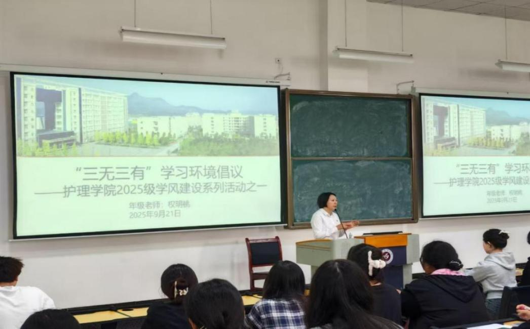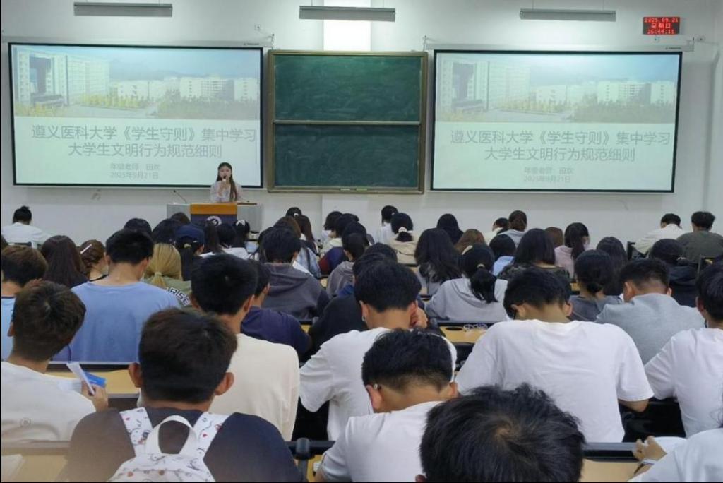 明规·笃行:学习规章制度,倡树优良学风。10月8日18:00,年级辅导员权明桃、田欢在三教阶梯教室组织全体新生系统学习了《学生守则》中校园文明行为规范、公寓管理办法等规章制度,并融入诚信、自律、换位思考等品质教育内容。随后,学院发起了学风建设“三无三有”倡议,倡导“课堂无手机、课余无游戏、日常无追剧”,鼓励同学们结交“书香友、运动友、实践友”,共同营造积极健康、向学力行的成长环境。