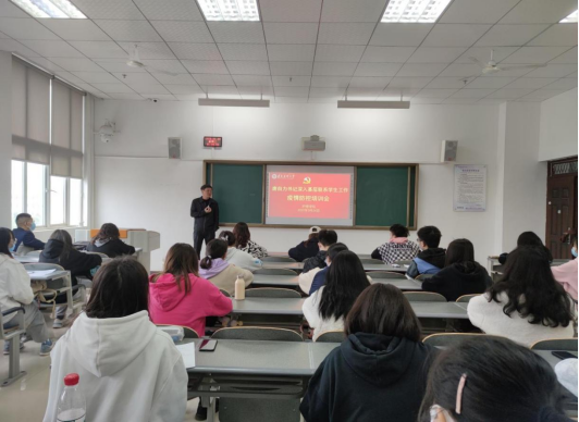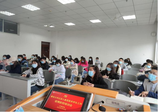 首先,唐自力书记向同学们讲解了新冠肺炎的相关知识,详细分析了国内外疫情发展态势和遵义务川本土疫情的防控情况,深刻解读了国家“外防输入、内防反弹”和“动态清零”的防治策略方针,并介绍了贵州省、遵义市和学校疫情防控的有关要求。随后,唐自力书记对同学们提出了三个要求,希望同学们提高政治站位,充分认识当前疫情严峻形势,坚决克服麻痹思想、侥幸心理;服从学校管理,严格执行非必要不离遵、不聚集、不外出等疫情防控要求;坚持防疫“三件套”,牢记防护“五还要”,做好自我健康监测。最后,张咏梅书记强调,同学们要牢记唐书记提出的三点要求,加强自我防护,积极配合学校做好常态化疫情防控工作。