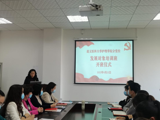4月22日18:00,遵义医科大学护理学院分党校2022年春季学期发展对象培训在护理学院6楼会议室(新蒲校区)举行。护理学院党委书记、分党校校长张咏梅,党委委员、学生第二党支部书记权明桃,各年级辅导员以及50名发展对象参加了开班仪式。