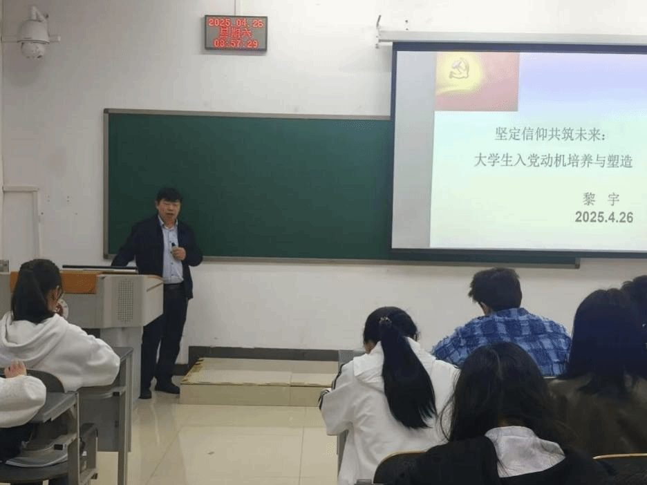 讲座中,黎宇老师立足党的百年奋斗历程,结合自身丰富的工作经验与感人至深的育人故事,从“为什么要入党、怎样端正入党动机、如何在实践中坚定理想信念”等方面,为同学们进行了深入浅出的阐述。他指出,入党动机是决定一个人能否成为真正的共产党员的关键因素,大学生作为新时代党的建设的重要力量,更应在思想上主动追求进步,在行动中争做表率。黎老师勉励在场学员坚定理想信念,厚植家国情怀,锤炼过硬作风,在奋斗中涵养爱党为民的赤诚初心。