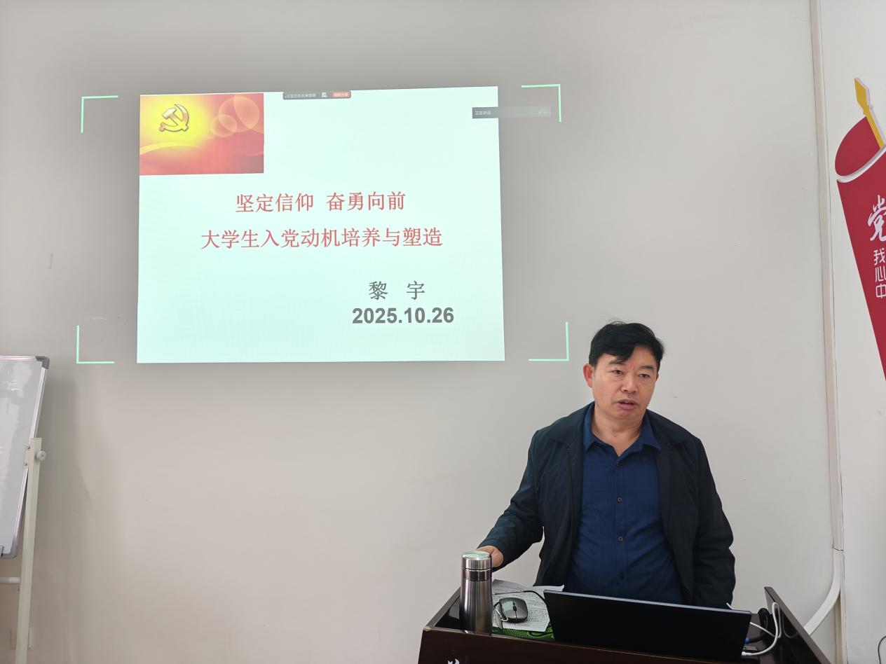 为进一步端正大学生入党动机,夯实党员发展对象思想根基,2025年10月26日08:30,护理学院分党校党员发展对象培训班在大连路校区荣殿楼7楼会议室举行。学校关工委副主任黎宇老师为我院党员发展对象讲授《坚定信仰 奋勇向前:大学生入党动机培养与塑造》。学院辅导员及党员发展对象40余人参加了此次学习。