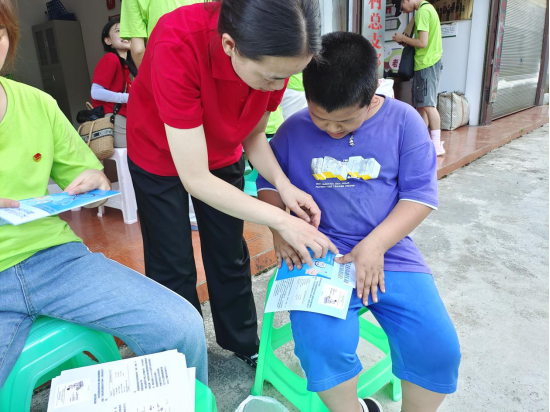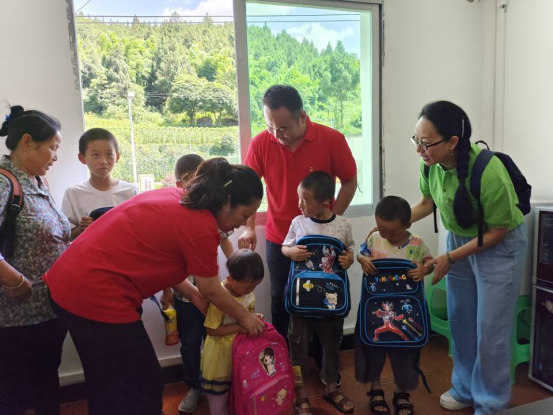 “青”情守护,呵护健康。队员们给当地留守儿童现场演示急救知识心肺复苏和海姆立克急救法,帮助小朋友们掌握一定的自救常识,并耐心地向孩子们讲解心理健康教育知识,陪他们一起玩游戏,帮助孩子们在游戏的世界里打开心扉,感受成长的快乐。留守儿童们都收到了老师们精心准备的学习用品,脸上洋溢着灿烂的笑容。