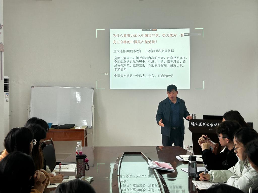 课上,黎宇老师以最近热播的纪实性正剧《沉默的荣耀》切入“信仰”这一主题,进而从“什么是入党动机、端正入党动机的重要性、当代大学生入党动机分析、如何培养树立正确的入党动机”等方面进行阐述。他指出,正确的动机是思想上入党的根本前提,是经受住各种考验的精神支柱,更是成长为合格党员的起点。黎老师勉励在场学员在思想上主动对标党员标准,在学业上深耕专业知识,在实践中锤炼责任担当,以“坚定信仰、奋勇向前”的姿态,为护理事业发展与健康中国建设贡献青春力量。