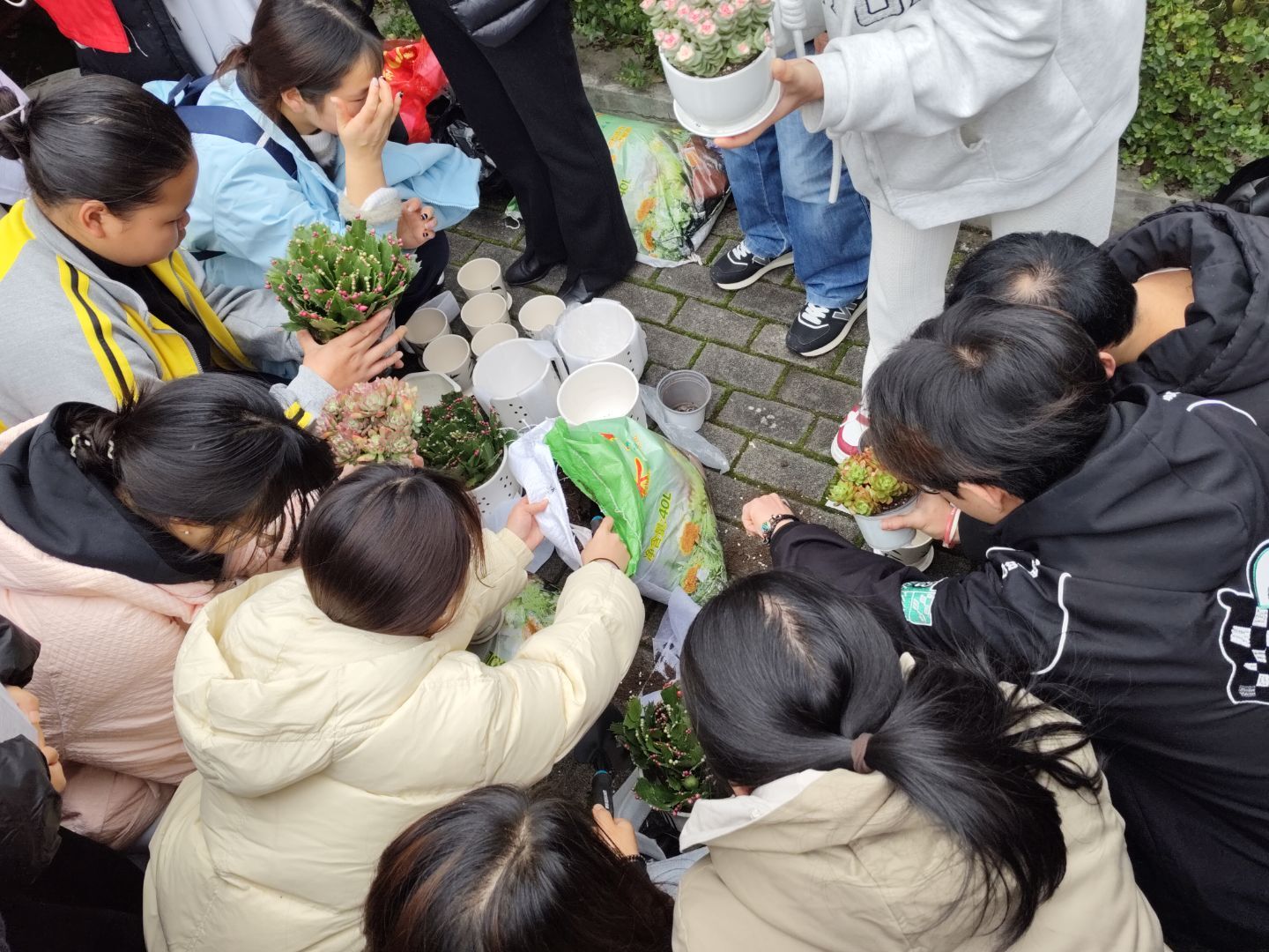 活动现场,冷运琴老师、谢长泉老师耐心为同学们讲解了绿植移植与养护知识,并俯身示范,手把手指导学生进行松土、移栽、定根等实操步骤,将劳动技巧与爱护生命的责任感融入每一个细节。同学们在老师们的悉心指导下,亲手完成绿植领养,并郑重签署了《绿植养护承诺书》,领取了《绿植养护小贴士》。一铲铲泥土的填充,一株株绿植的安家,让同学们在亲身体验中深化了对劳动创造价值的理解。