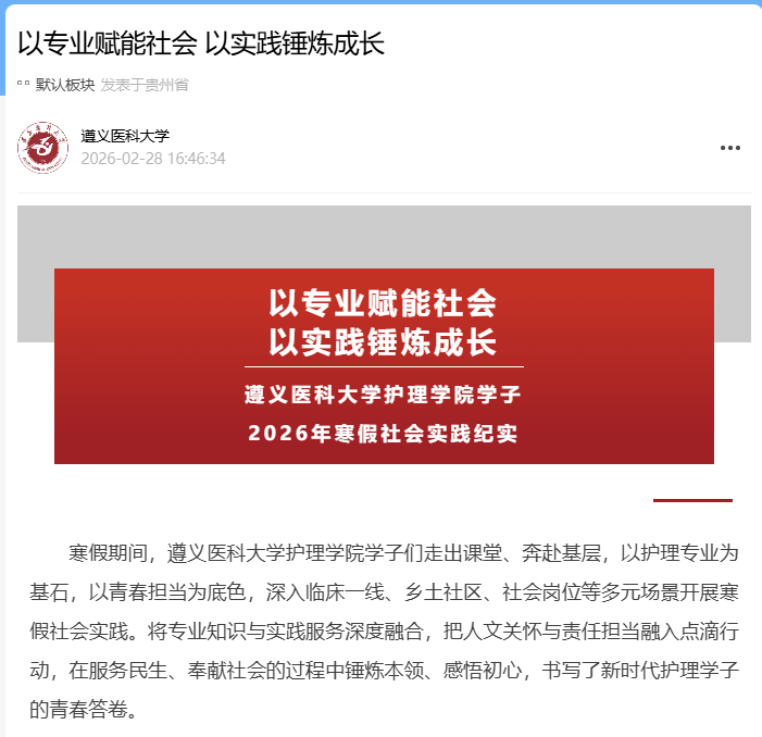 遵义医科大学护理学院 地址:贵州省遵义市新蒲新区学府西路6号电话:0851-28609773 邮编:563003 黔ICP备06003261号-2 Email: 80196150@qq.com