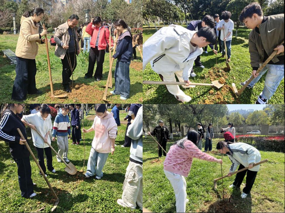 活动现场,师生携手劳作,挥锹铲土、扶苗填坑、浇水固根,以实际行动植绿护绿。学院关工委老师以身作则,在劳动中言传身教,将育人初心与青年成长引导相结合,把思政教育、劳动教育、生态教育融入实践课堂,让青年学生在劳作中受教育、长才干、强体魄。