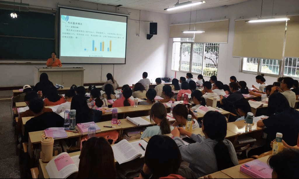 2023年9月19日下午四点,内外科护理学教研室组织召开了学生考试反馈会,2021级护理学、助产学专业全体学生参加了此次会议,此次会议主要目的是对2022-2023学年第二学期举行的《内科护理学-上》《五官科护理学》课程的期末考试情况进行总体反馈,教研室主任曾芬莲老师首先介绍了考试的总体情况,并将考试过程中学生失分率较高的试题再次向学生进行了综合分析。